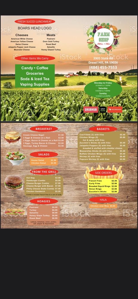 Welcome to Farm Shop Deli, a charming neighborhood spot located in Drexel Hill, PA. Here, simplicity meets flavor with a diverse menu that caters to all tastes. From hearty baskets featuring crispy cod fillets and spicy buffalo wings to an array of loaded hoagies like the classic Philly cheesesteak, you'll find a satisfying meal for any occasion.